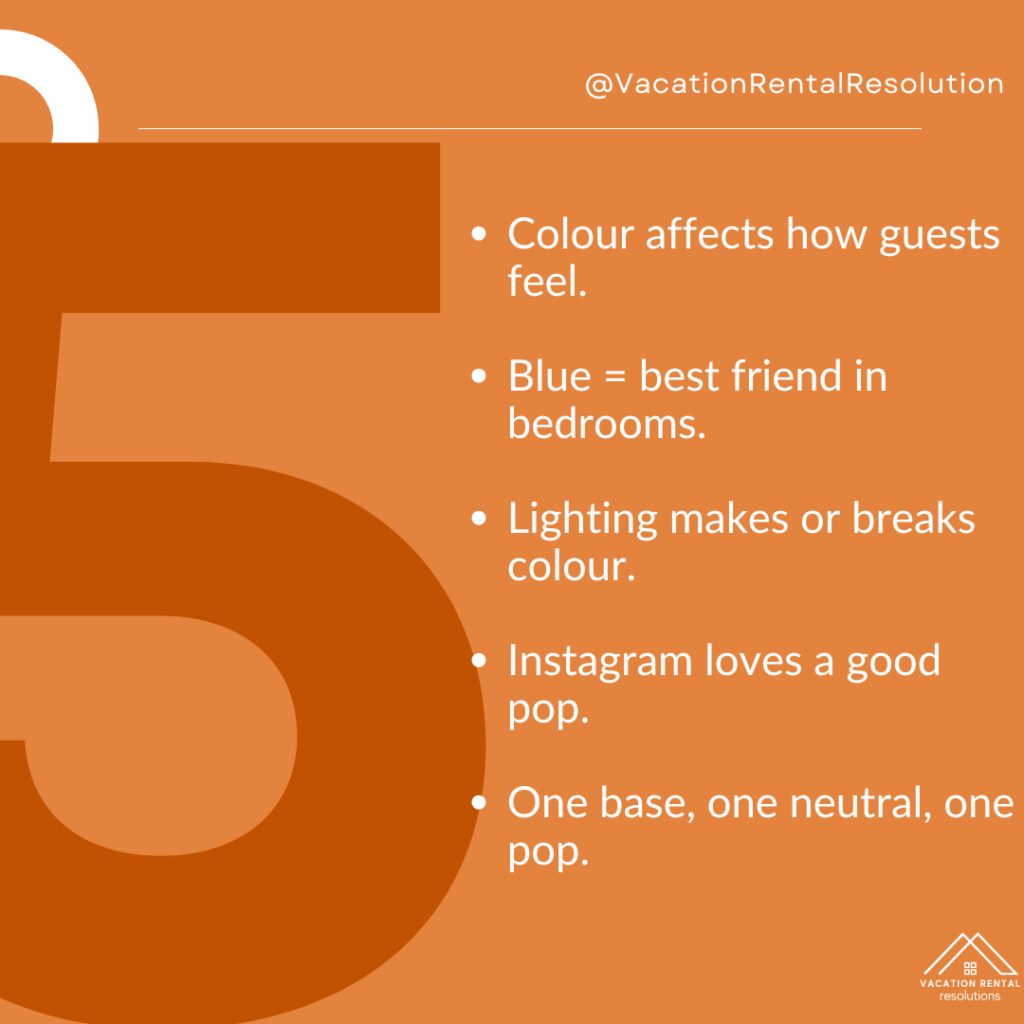 In your “Launch Your First Vacation Rental” course, we talk about creating spaces that feel restful. Colour plays a massive role in that.